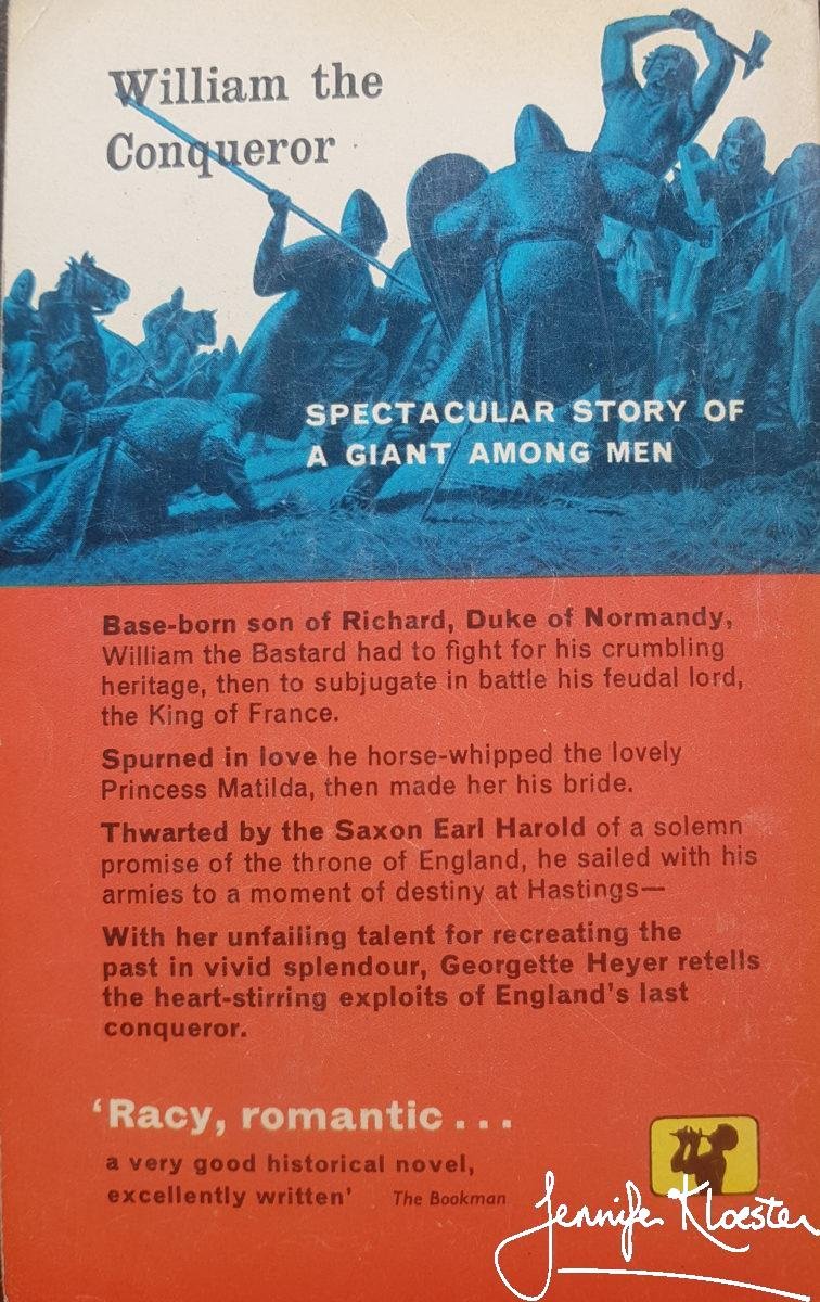 Determined to recreate the past as accurately as she could, Georgette and Ronald also travelled to Normandy to gather material for the book. It must have been a fascinating journey travelling about northern France, visiting the sites of William’s battles and sieges in order to gain a sense of the physical landscape and see the places which had born witness to so many of the Conqueror’s exploits. It is hard not to be impressed by Heyer’s grasp of her subject and of her ability to distill so much historical detail into a readable fictional account. From any point of view The Conqueror is a significant achievement.